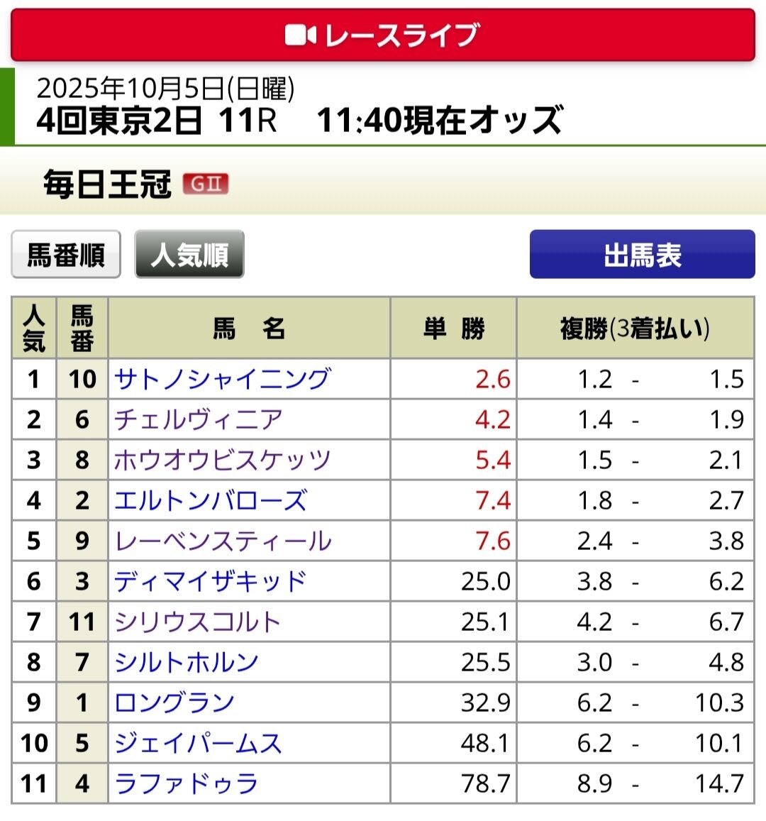 レーベンスティールの抜け出しに期待します。とは言うものの、ムラムラがある馬なので惨敗も覚悟の上です。相手には上位2頭。