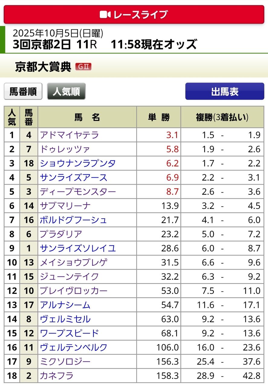 凱旋門賞も大体決まりましたが、先に国内のレースから。端的にサクサク書きます。