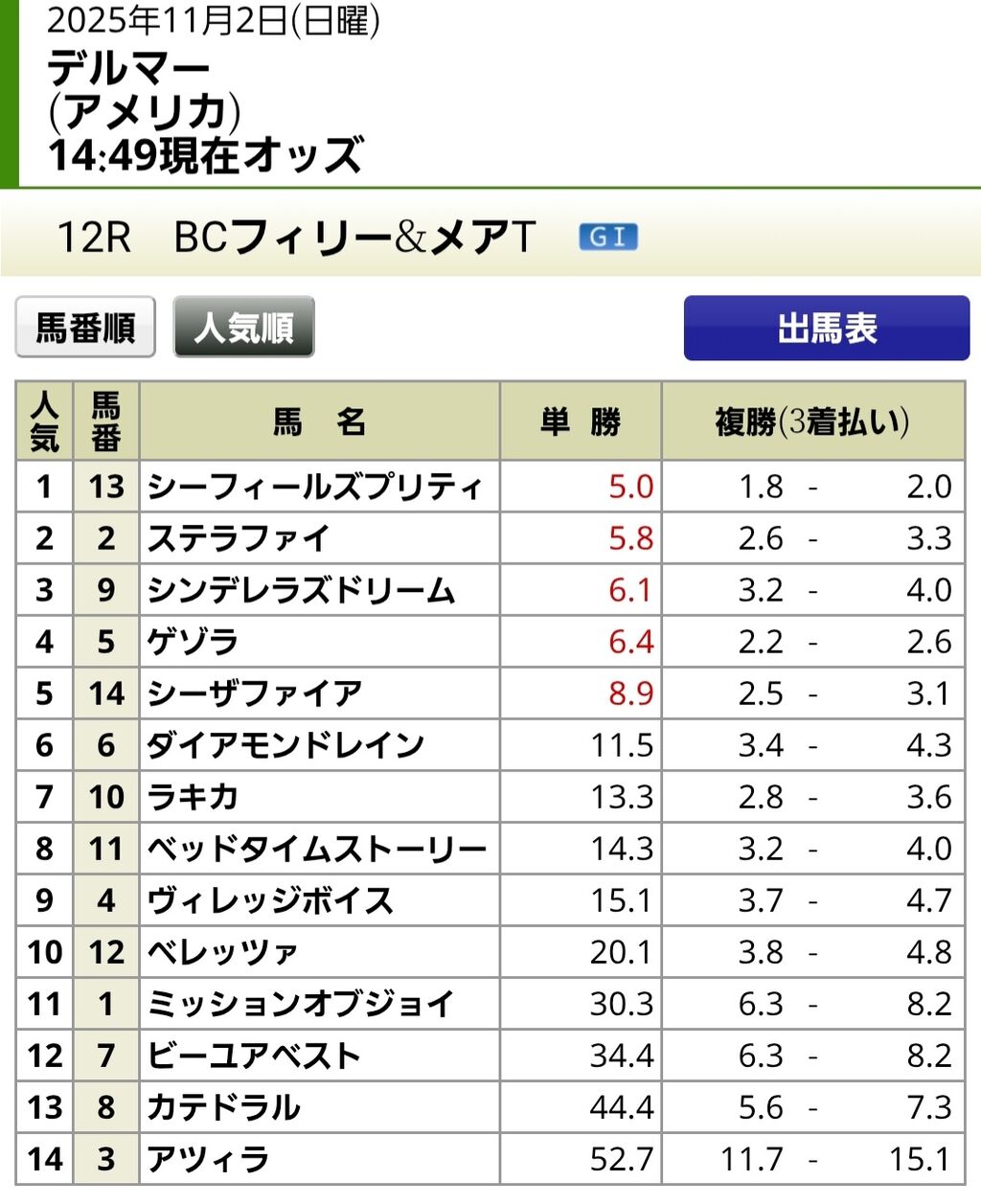 前記の通り、レガレイラはピンパーなのでオッズ的にも期待値が低いので基本的には消しとしました。勿論普通に走れば勝ち負け。