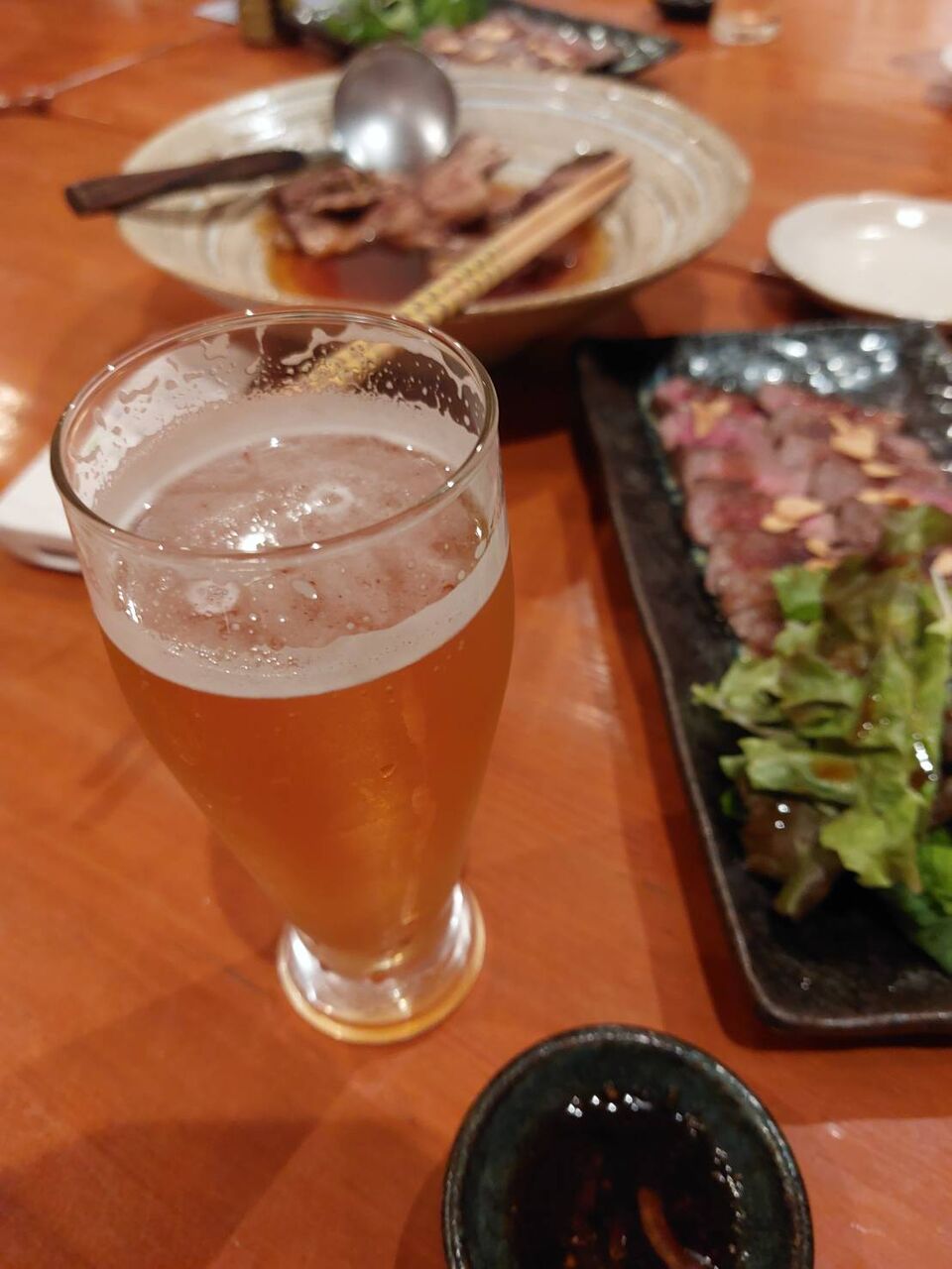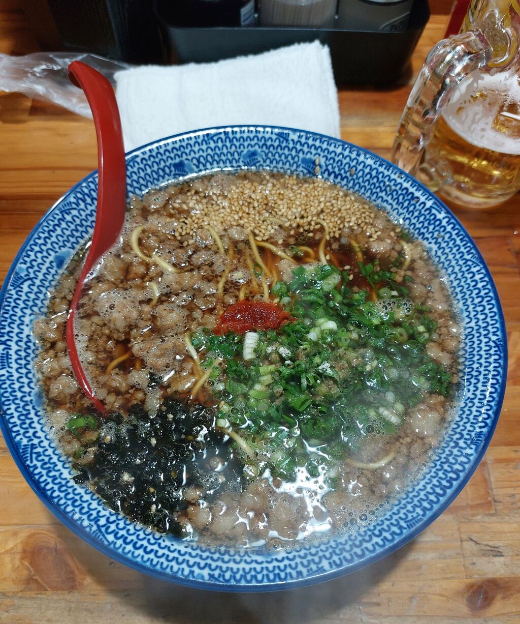 ラーメン1杯にしては高めですが、時代的には仕方ないのかな。でもキンキンに冷えたジョッキで飲んだビールが旨かった。